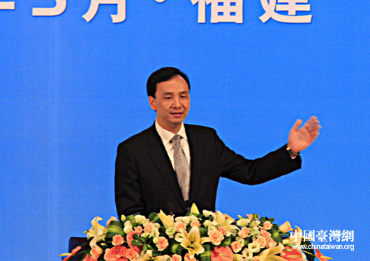 海峡论坛大会17日上午在厦门隆重开幕。图为中国国民党副主席、桃园县县长朱立伦在大会上致辞(中国台湾网 钟宝华 摄)