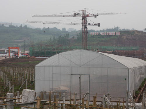 位于重庆市北碚区的重庆台湾农民创业园,仍然在不断建设当中,近处的大棚则是火龙果的育苗大棚。(中国台湾网 杨丽 摄)