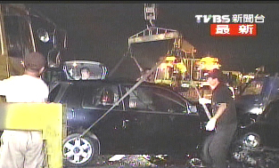 31日凌晨台湾一公路发生连环大车祸,12辆车追撞在一起。(图片来源:台湾TVBS电视台)