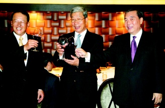台湾贸易协会昨晚宴请赴台大陆采购团,台湾方面热情招待李水林(中)一行。(图片来源:联合报)