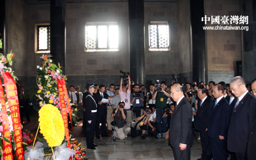 6月1日上午8时30分许,吴伯雄率领中国国民党大陆访问团晋谒南京中山陵,向孙中山像献花,并行三鞠躬礼。(中国台湾网 钟宝华 摄)