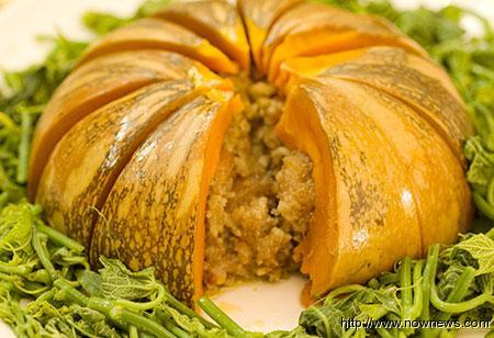 南瓜里藏着粉蒸肉,粉蒸肉瘦而不柴,南瓜极甜也不过烂,真的是美好滋味。(图片来源:台湾“今日新闻”)