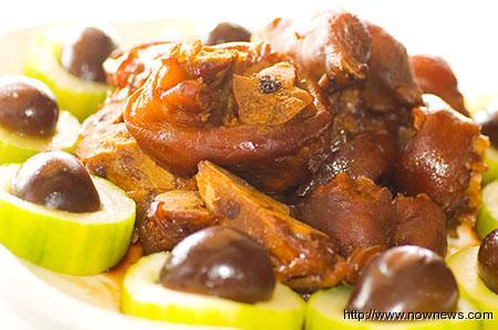 猪脚用长得像铁蛋的卤蛋与黄瓜摆盘装饰,很有乡下妈妈的手法,亲切又好吃。(图片来源:台湾“今日新闻”)