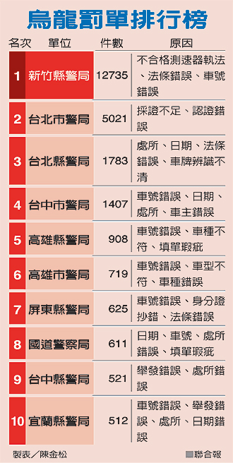 台湾警方开错罚单的原因千奇百怪。(图片来源:台湾《联合报》)