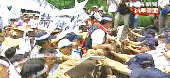 陈情农民和警方对峙,场面一度火爆。(图片来源:台湾TVBS电视台)