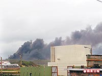 台电核三厂启动变压器爆炸失火,厂区浓烟窜天际。来源:台湾《苹果日报》