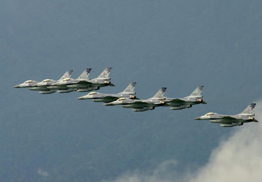 台军现役F-16A/B战机编队飞行。(图片来源:新华网)