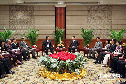 国家旅游局副局长杜江26日会见来京营销农特产品和旅游的台中市、彰化县、台中县、南投县主要负责人。杜江同彰化县县长卓伯源交谈。(中国台湾网 钟宝华 摄)