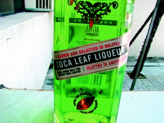 “艾克香”瓶身标签上就印有“oca leaf liqueur”(即古柯叶酒)。图片来源:台湾《联合报》