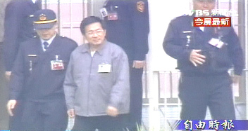 7月25日陈水扁二度延押期满,合议庭将对是否三度延押陈水扁进行评估(图片来源:台湾TVBS电视台)