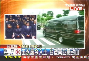中国台湾网7月2日消息 据台湾TVBS电视台报道,有“经营之神”之称的台塑企业创办人王永庆的入土仪式,今天下午进行。下午1点30分开始祭祀,将棺木移至墓地,下午3点15分准时入土。