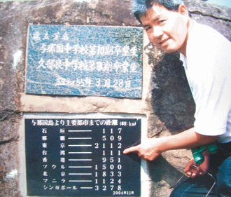 与那国岛上标示与台湾地区的花莲距离仅110公里。图片来源:台湾《联合报》