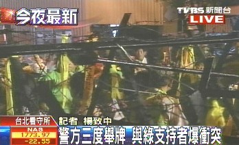 图为扁迷和警方对峙画面。图片来源:台湾TVBS电视台