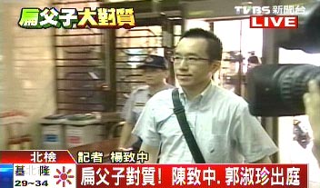 陈致中抵达台北法院,陈水扁父子首次对质引关注。来源:台湾TVBS电视台