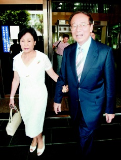 张俊雄(右)上午前往台北地院应讯。图片来源:台湾《联合晚报》