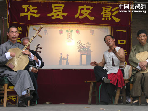 关中民间艺术家演出皮影《桃花往事》。(中国台湾网 芜同 摄)