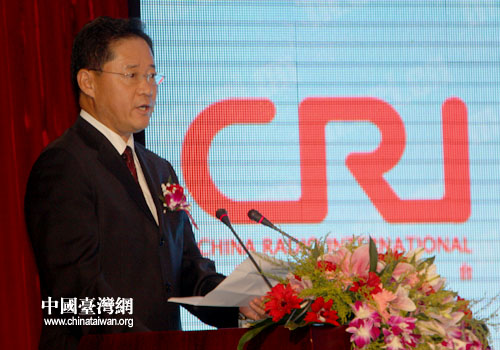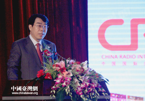 “移动国际在线”今天在北京正式启动,图为国际广播电台台长王庚年在启动仪式上致辞。(中国台湾网 张弛 摄)