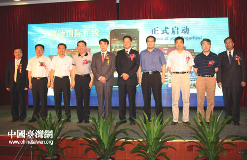 “移动国际在线”今天在北京正式启动,图为出席启动仪式的部分嘉宾合影。(中国台湾网 张弛 摄)