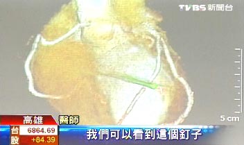 高雄小港医院医师周俊仁表示:“我们可以看到钉子仿佛是穿过血管,在开刀房赶快把胸骨切开,然后把钉子拔掉,拔掉之后血会喷出来,所以我们再做血管修补手术。”