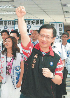 中国台湾网7月21日消息 据台湾《联合报》报道,昨天是国民党桃园县长党内初选登记最后一天,桃园县议长曾忠义与“立委”吴志扬昨天分别在支持者、青年军的簇拥下完成登记。