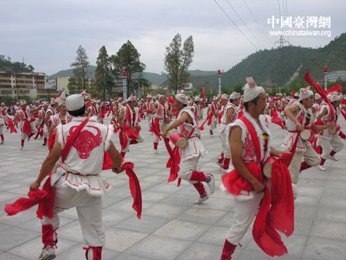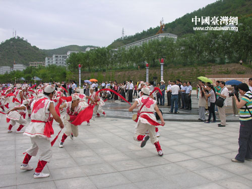 中国台湾网7月21日陕西延安消息 “情系长安——两岸文化联谊行”活动21日走进安塞县,气势磅礴、风格独特、豪迈粗犷、刚劲奔放的安塞腰鼓,使台湾文化界人士震憾,纷纷加入其中与安塞腰鼓手一同起舞,台湾艺术大学舞蹈系教授曾照熏激动的说,安塞腰鼓让人激动,这是蕴藏在民间的伟大的艺术。