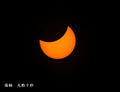今天上午台北艳阳高照,许多民众相当兴奋,只是有时候太阳会被云层挡住,不过一下子又可以看到台北日偏食的景象。(罗煜明)