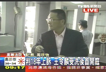 中国台湾网7月23日消息 据台湾TVBS电视台报道,台湾东森集团前总裁王令麟涉及掏空427亿元(新台币,下同)的“力霸掏空案”,被判18年不服判决上诉,今天前往台北最高法院开庭。