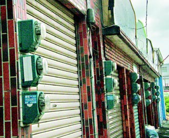恒春镇用电,每个电表补助140度,许多家庭化整为零,镇内电表大增。这个小区住户,每户都装三具电表。(来源:台湾《联合报》)