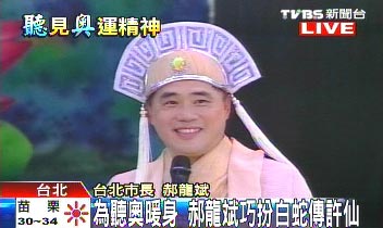 为听障奥运会热身,台北市长郝龙斌粉墨登场扮许仙。来源:台湾TVBS电视台