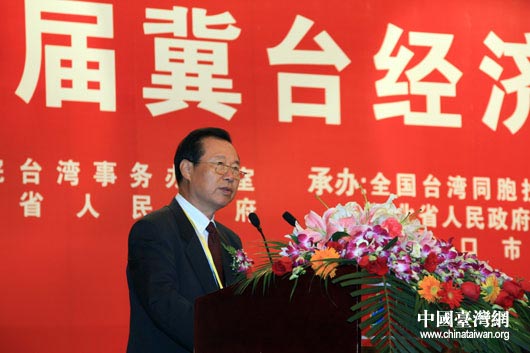 “第八届冀台经济合作洽谈会”8月8日在张家口举行,海峡两岸关系协会副会长王在希出席开幕式并致辞。(中国台湾网 钟宝华 摄)