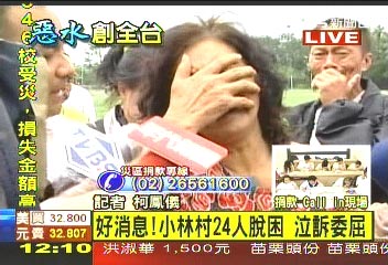 高雄县的甲仙乡小林村有民众打电话向外界亲友求援,说在9日凌晨小林村爆发严重泥石流,整个村落大约200户人家惨遭掩埋,只有43人逃到附近的台湾“中华电信”服务所等待外界救援,在中午12时许有部分民众顺利脱困。