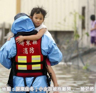 屏东佳冬,小女孩被抱离开,一脸茫然。来源:台湾《联合报》