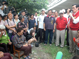 马英九10日到台东了解灾情,并慰问灾民,与灾民面对面沟通。来源:台湾“中央社”