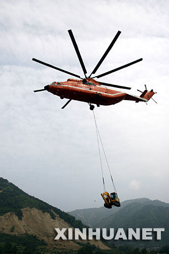 米-26直升机在四川汶川大地震抢险救灾中发挥重要作用。图片来源:新华社