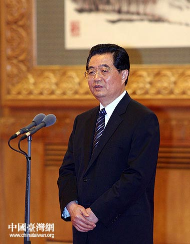 8月19日下午,中共中央总书记胡锦涛在人民大会堂会见了高金素梅率领的台湾少数民族代表团,图为胡锦涛发表重要讲话。(中国台湾网 钟宝华 摄)
