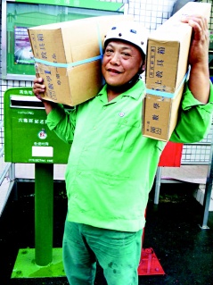 高雄县六龟邮局邮差洪英俊天天扛着10多公斤邮件送往灾区,一趟山路就要走4个多小时。图片来源:台湾《联合报》