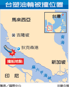 这艘船是在马来西亚狄克森港(Port Dickson)外海遭撞,数小时后船身起火,马来西亚当局赶紧派出数十名海事警察局成员、11艘船和2架直升机抢救。