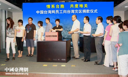 中国台湾网8月20日北京消息 20日下午,中国台湾网全体员工举行捐款活动,向台湾灾区同胞奉献一片爱心。