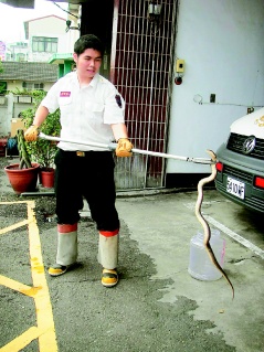 彰化县竹塘消防分队24日再抓到1条眼镜蛇。图片来源:台湾《联合报》