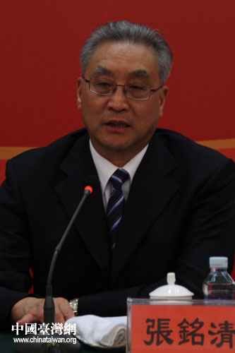 海峡两岸农业融合升级合作恳谈会今天下午在潍坊举行,海协会副会长张铭清出席。(中国台湾网 张弛 摄)