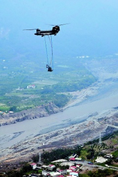 直升机参与“莫拉克”风灾救援。图片来源:台湾《联合晚报》