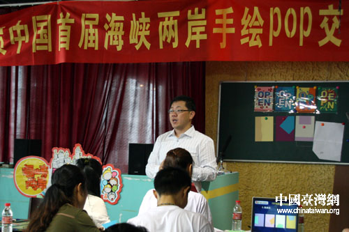 中国台湾网9月6日消息 首届海峡两岸手绘POP交流会在北京举行,在台湾手绘POP界久负盛名的简仁吉老师《POP创意剪贴海报设计》课堂上,许多大陆手绘POP行业的佼佼者都以非常认真的态度学习着简老师带来的新内容。