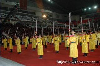 2008年两岸师生联合祭孔大典,遵循古礼在新竹县立体育馆举行。(来源:台湾“今日新闻”)