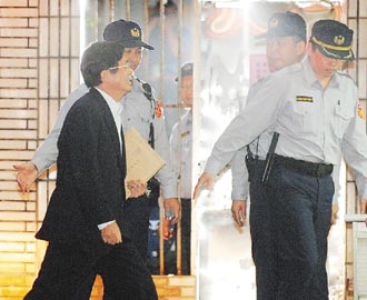 陈水扁对羁押案抗告成功,重获自由现生机;他昨天傍晚被押解到台“高院”开庭时,神情轻松的微笑出庭。(图片来源:台湾《联合报》)