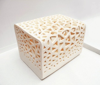 “会呼吸的椅子”外型像个方正的白豆腐,吴郁莹表示,椅子的材质是采取热可塑高密度泡绵,百分百环保材质;泡绵上不同大小的挖洞设计“暗藏玄机”,经过专业的结构空间计算,让三层式组合包覆而成的豆腐椅,随着坐者的体重、坐姿“自动调整”。