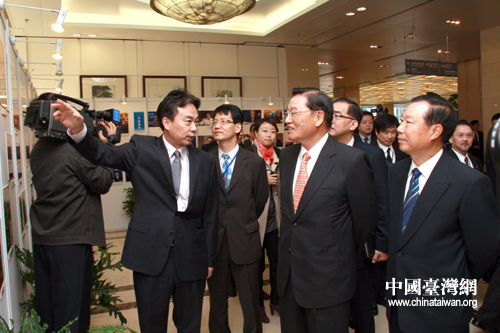 10月29日,新华社副总编辑彭树杰、海协会副会长王在希陪同江丙坤一行参观新华社。(中国台湾网 田云鹏 摄)