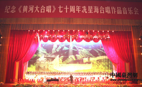 中国台湾网11月8日北京消息 “风在吼,马在叫,黄河在咆哮,黄河在咆哮……”。11月7日晚,在北京人民大会堂里,《黄河大合唱》气势磅礴的歌声如黄河之水,激荡着6000名听众的心。由国家广播电视总局主办,中国音乐家协会和世界杰出华商协会协办,中国广播艺术团、中国电影乐团与中国音协合唱联盟承办的纪念《黄河大合唱》诞生70周年暨冼星海合唱作品音乐会在这里举行。