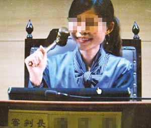 屏东法院林姓代理录事向男友法官借来法袍,坐上审判长位子敲槌,再将照片贴上博客。 来源:台湾《联合报》