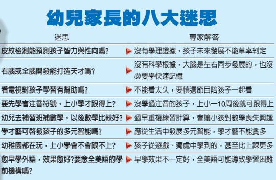 幼儿家长八大迷思。来源:台湾《联合报》