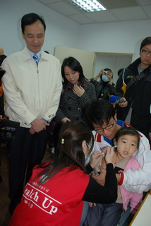 台当局行政机构副负责人朱立伦前往桃园县龟山乡卫生所及大园乡圳头小学视察甲型H1N1流感疫苗施打情形,朱立伦先向准备施打的小朋友加油及鼓励,也对于整个施打作业进行了解,对于医护等人员的全力配合相当肯定。